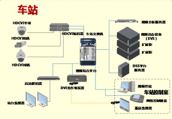 軌跡交通車站HDCVI高清視頻監控拓撲圖
