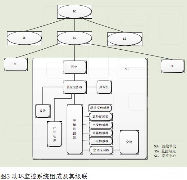 動力環節監測體系運用在機房、基部站等無人值守的環境中,對局站內的通訊電源、蓄電池組、UPS、發電機、空調等智能、非智能設備以及溫濕度、煙霧、地水、門禁等環境量完成“遙測、遙信、遙控、遙調”等功用。為了完成對多個量的監測,動環體系集成了各品種的傳感器,是多傳感器集成體系傳感器“多類型”的一個經典事例。一同,此監控體系充分使用了通訊傳輸設備所能供給的各種傳輸信道資本,能夠完成多級網管,能夠對一切局站的全參數、全方位的監控,這又很好體現了多傳感器集成體系傳感器“多數量”的一面。動環監測體系的構成如下所示(見圖3)。
