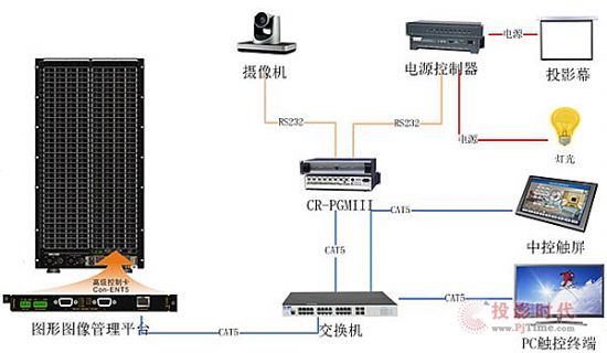 高檔操控卡的網(wǎng)絡(luò)接口能夠經(jīng)過交換機(jī)和CR-PGMIII操控主機(jī)級聯(lián)對接,然后完結(jié)對會場一切體系的會集操控,在PC客戶端能夠定制個性化的觸控界面然后完結(jié)一臺pc,一套終端軟件觸控全部指揮廳一切體系。