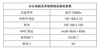 通過對每臺辦公電腦及網絡打印機、網絡攝像頭等其他網絡設備的編碼,實現設備的IP、MAC、使用人綁定,輕松解決重裝系統后網絡設置、網絡流暢異常監控、內網ARP攻擊源排查等日常網絡管理問題,掃描其二維碼標簽所獲取信息如表3所示。
