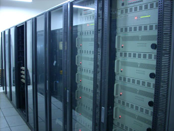機(jī)房采用大功率的下送風(fēng)HIROSS機(jī)房空調(diào),使機(jī)房保持恒溫、恒濕、新風(fēng)狀態(tài)。
